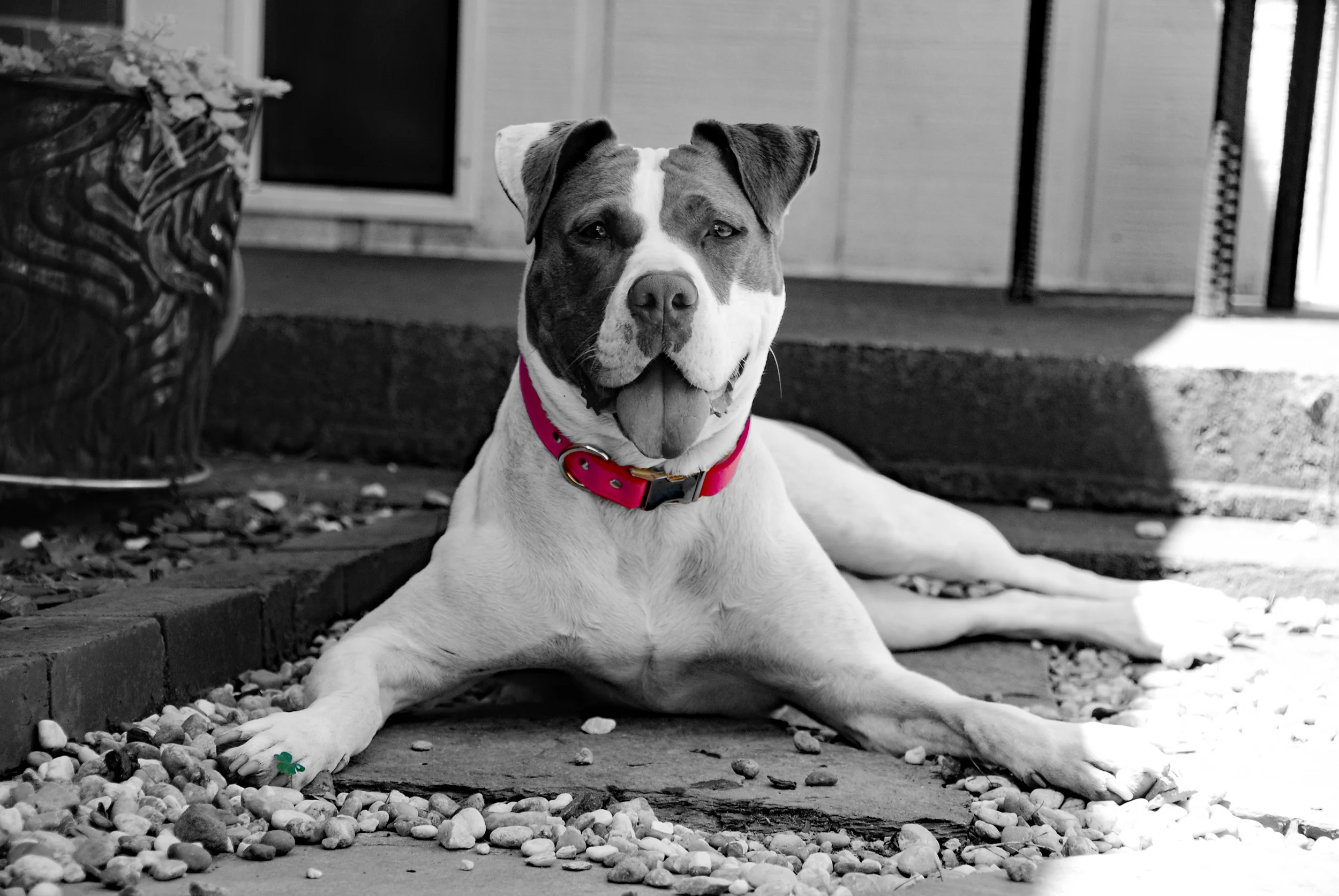Traveling is a little harder for us now, Queen doesn't go to our pet sitters like the other dogs since she hasn't been 100% socialized yet. We have had to hire someone to come and stay at the house with her and I worry like crazy while I am gone. I added wireless cameras to our house so I can see her and what she is doing while I am away from the house. I do work from home, so I am here with the dogs most of the day, which is awesome. We are certainly lucky and so happy to have her here as part of our family. She has brought so much joy and has taught us so much about pit bulls and what we had been missing. She is our first but definitely not our last.