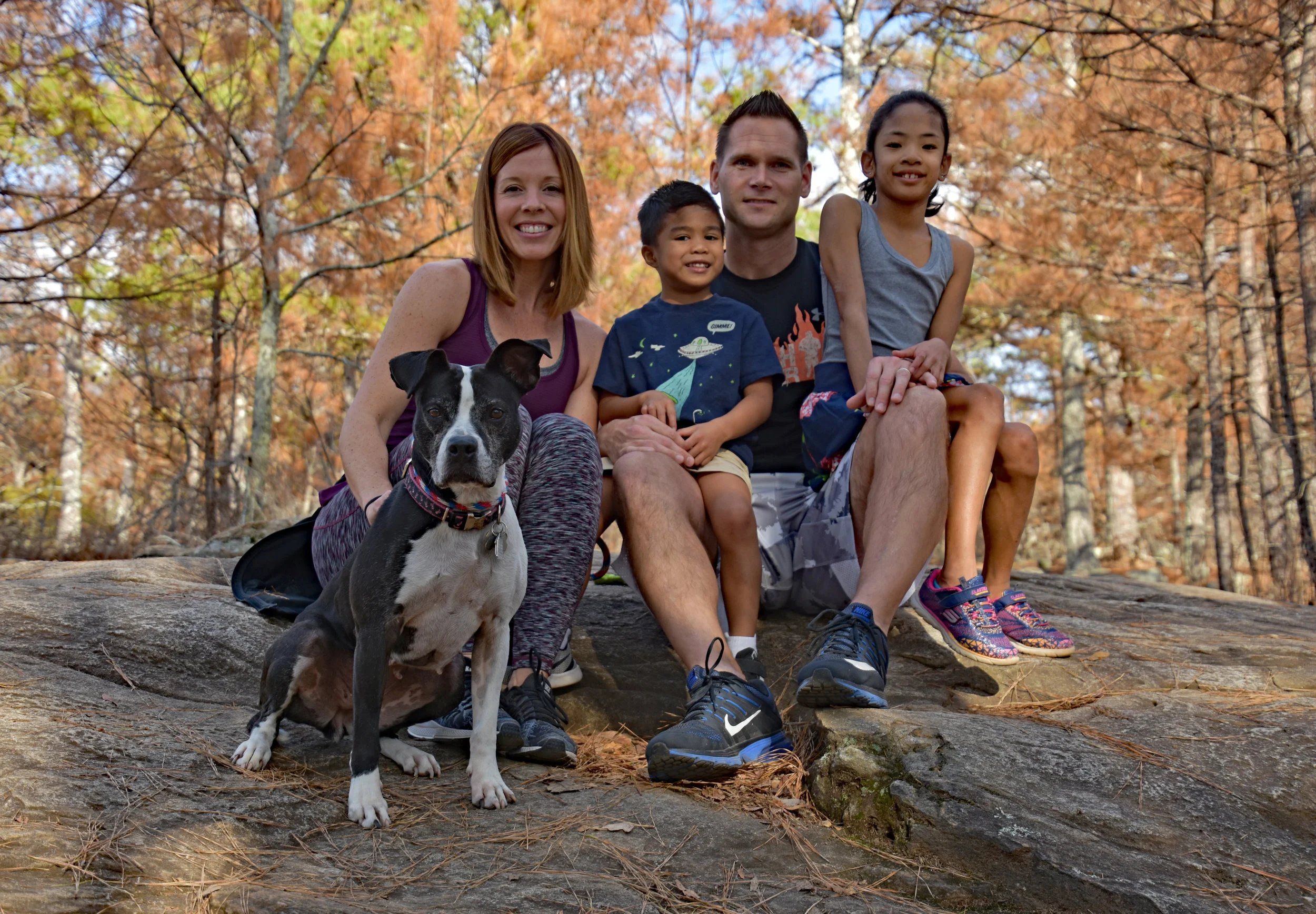 Photographers Note: After several reschedules with this family due to weather or illness, we finally got to do the shoot and it was on just about the most perfect winter day you can get in Atlanta. We met up at Pigeon Hill Trail in Marietta and did a short hike to get to some great spots for photos. Alicia had mentioned that Gerrie can be slow to warm up to strangers, so I took my que's from her and really focused on the job at hand. Well before you know it, this sweet girl was coming right over to me while I was sitting on the ground and giving me kisses and love. Alicia sent me a note afterwards with the following: "Gerrie certainly made fast friends w/you & sensed you were a doggie lover! She doesn't warm up so quickly to many, so it was so wonderful for us to see her share those kisses so quickly w/you--even if they are a bit smelly, her kisses are the best! Hahaaa! " This made my day! There is something about knowing you have won over a pup that takes a little more time!
